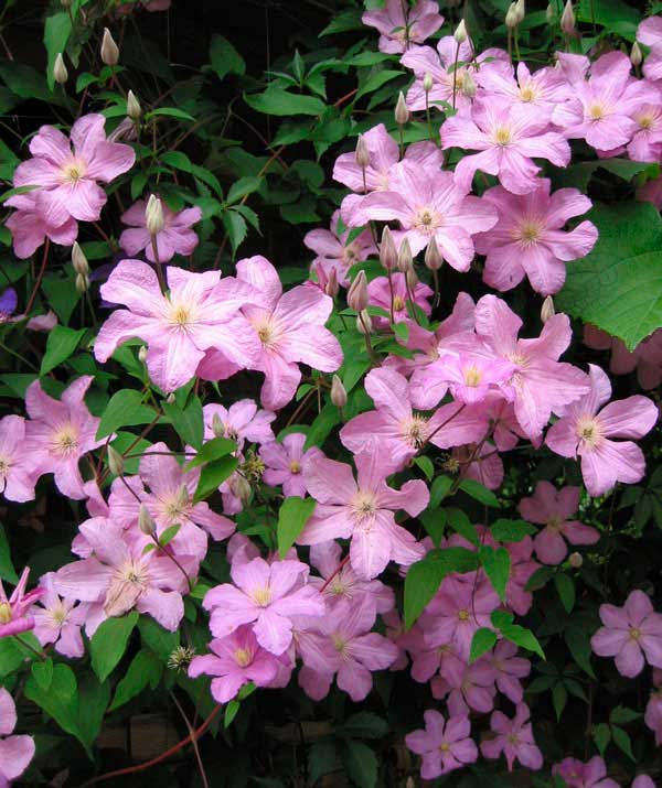 Клематис Комтесс де Бушо станет ярким украшением вашего сада, радуя вас своими крупными и красивыми цветами на протяжении всего лета.