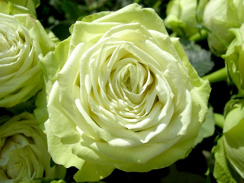 Саженец чайно-гибридной розы Грин Ти (Green Tea) привлекает внимание своим уникальным внешним видом. Плотно расположенные лепестки создают впечатление, что цветку не хватает места для своего великолепия. Легкая волнистость краев лепестков придает цветку воздушность и легкость. Необычный зеленоватый оттенок лепестков и более насыщенная зеленая серединка делают этот сорт настоящей находкой для любителей роз. Компактные кусты высотой около 70 см с крупными цветками диаметром до 10 см прекрасно впишутся в любой сад, розарий или клумбу, радуя своей красотой как на улице, так и в срезке в доме на протяжении до двух недель. Легкий аромат розы не будет навязчивым, а лишь подчеркнет ее изящество.